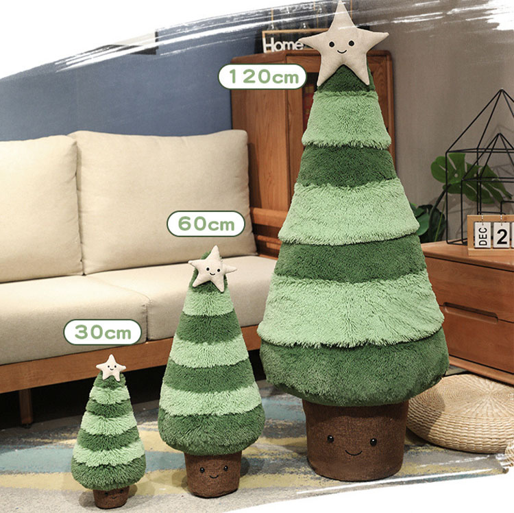 Este juguete de peluche de Navidad es un éxito de ventas para Navidad. Viene en cuatro estilos y tres tamaños de juguete: 30 cm, 60 cm y 120 cm. El tamaño del árbol de Navidad se puede elegir según sea necesario. Se puede colocar en diferentes posiciones. Por ejemplo, se puede colocar un 30 cm en un automóvil o en una ventana de la ventana. Se puede colocar uno más grande en la sala de estar como una decoración de vacaciones. Algunos adornos pequeños también se pueden decorar en el árbol de Navidad, que es muy festivo.