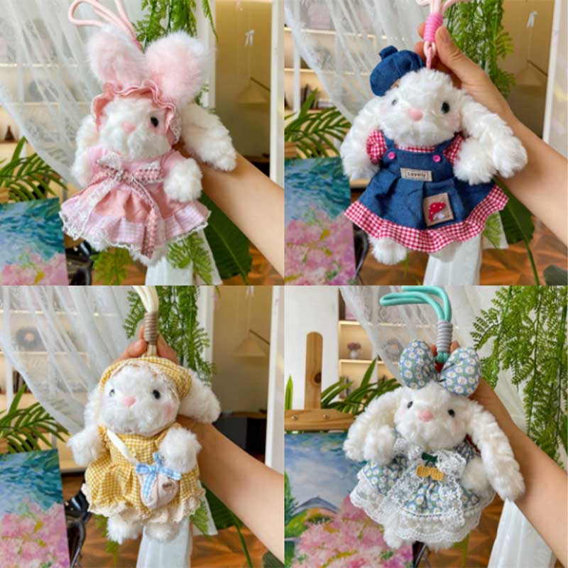 Este lujoso llavero de animales del conejo está hecho de tela de lujo de alta calidad. El interior está lleno de algodón PP esponjoso. Este lindo conejo tiene muchos estilos diferentes. Se combinan con diferentes ropa y accesorios. Estos productos son producidos por ZebraParty® Plush Toy Factory y han aprobado la certificación de seguridad.